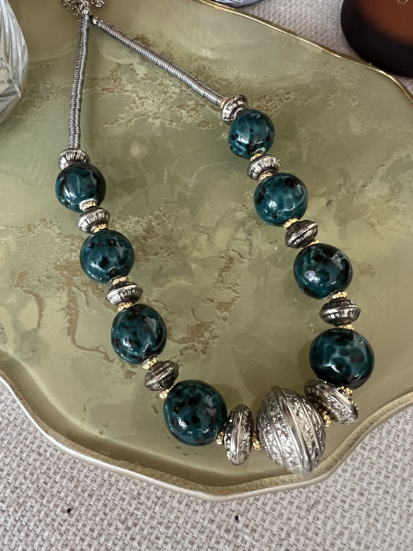 Colar artesanal feito com pedras naturais , cerâmica e metal.
