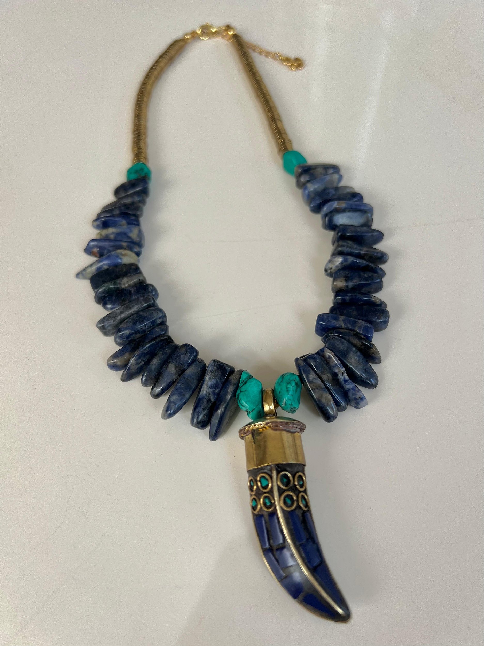 Colar artesanal feito com pedras naturais , cerâmica e metal.