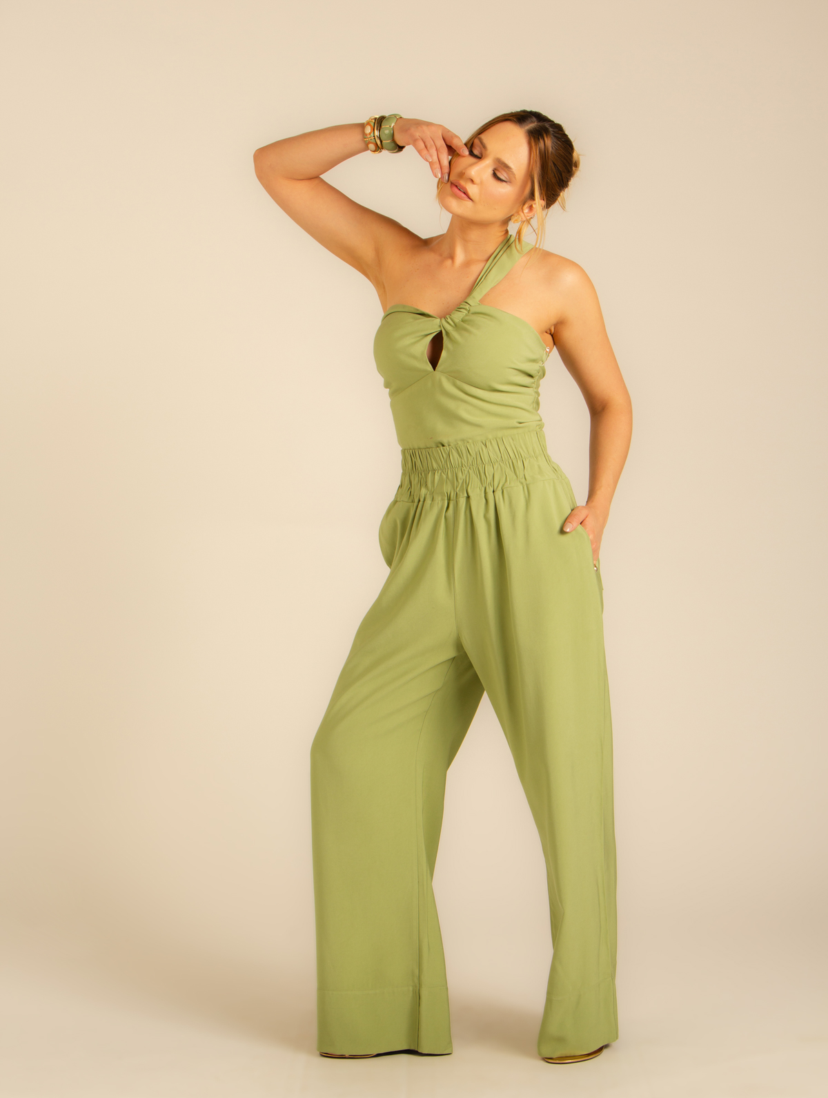 O Top Vibração é confeccionado em Alfaiataria de viscose. O Top possui alça faixa ajustada no decote e fechamento costas por zíper de metal. O busto contém abertura e franzido nas laterais.