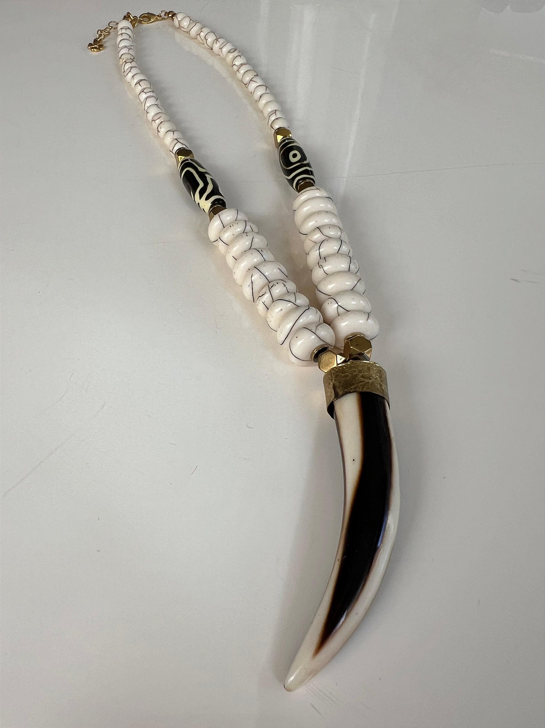 Colar com Howlita, Hematitas douradas, detalhes tibetanos e